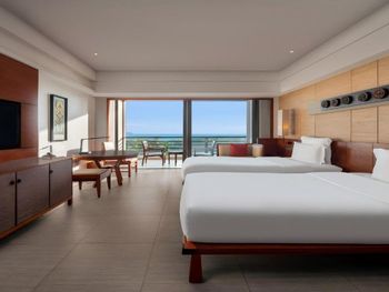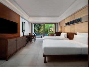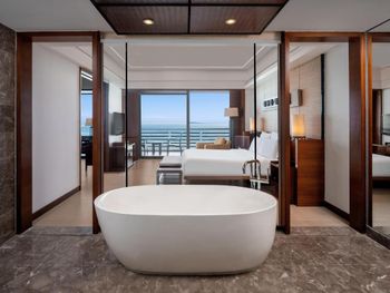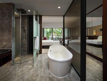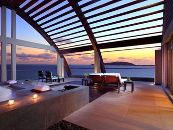 Номера этого роскошного отеля со стеклянными дверями от пола до потолка оформлены в юго-восточном азиатском и китайском стиле. С собственных балконов открывается потрясающий вид на залив. К услугам гостей 8 вилл и просторные апартаменты с видом на океан, а также обеденной зоной и гостиной.