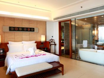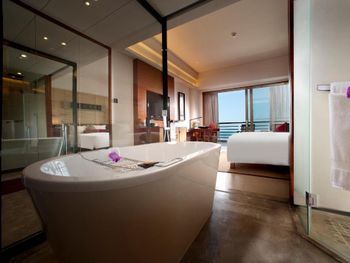 Курортный спа-отель Pullman Oceanview Sanya Bay расположен в заливе Санья, всего 2 минутах ходьбы от пляжа и аллеи «Коридор кокосовой мечты». Он оформлен в стиле Юго-Восточной Азии и окружен пышными тропическими растениями. В отеле обустроен дневной спа-центр и несколько ландшафтных бассейнов.