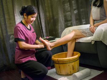 Хорошие завтраки, отличный бассейн, но лежаков недостаточно для всех желающих. Ужины мы не брали, но сходили в ресторна ONE при отеле. Взяли сет с пекинской уткой. Он рассчитан человек на 5)))Столько блюд для двоих не съесть. Рядом есть немного ресторанчиков и магазины. Для нас так было интререснее. Массаж в отеле не брали, он раза в 3 дороже, чем в салоне в 5 минутах ходьбы. Персонал очень старался. Все понравилось