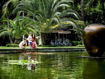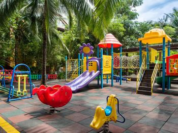 Отель утопает в зелени, территория ухоженная, есть детские активности: песочница под большим деревом, детские площадки, кормление рыбок у ресторана (за доплату), мини-аквапарк.