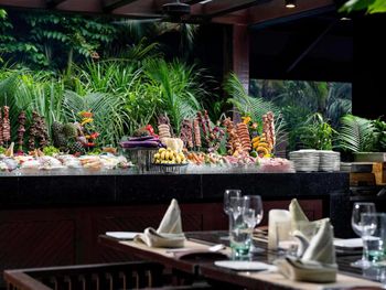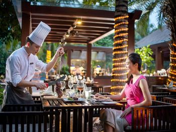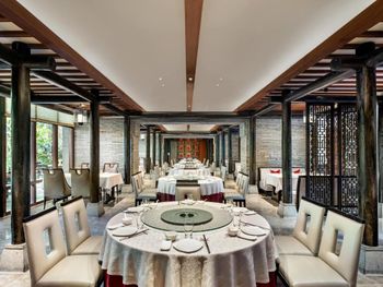 В ресторане Shazhou Western подаются сытные блюда международной кухни, а ресторан Dingweixuan специализируется на блюдах китайской кухни. В баре Breeze предлагается ужин в формате «шведского стола» с разнообразными блюдами из морепродуктов. В представительском лаундже Red Sun с прекрасным видом на океан сервируется послеобеденный чай «шведский стол», а также устраивается «счастливый час».