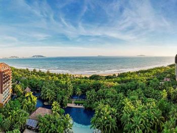 Отель, полностью, оправдал ожидания, даже их превзошёл. Заранее списался с отелем, потому что, не списывали деньги за бронь с карты, и приезжали мы не день брони а 3 ночи следующих суток, но меня заверили что бронь будет за нами, даже предложили поменять даты, чтобы не тратить лишние деньги, но нам проще было сразу ночью зачелиться, и отоспаться. Не пожалел, в итоге разместили быстро, номер дали лучше чем в брони, (с видом на море), имеете ввиду, что есть депозит 1000 юаней ( но это стандатно, для таких отелей) Сразу, на следующий день, включилась в поддержку Мария, менеджер отеля, выслала все расписания, куда сходить и, что очень приятно, всегда была на связи по любым вопросам. Это очень ценно, когда едешь сам, без тур оператора и есть куда обратиться с вопросами! В номере, есть всё что нужно, включая утюг, халаты, воду, мини бар. Очень хорошая территория, много зелени, для семей с детьми, просто супер, бассейны, горки, пенные вечеринки, зал автоматов, детская комната, всё хорошо продумано. Очень понравился пляж, нет толчеи как в Дадунхае, море прекрасное в любую погоду, хоть дождик хоть солнце. Пляжные полотенца везде выдают, и на пляже и у бассейна, в общем стараются соответствовать уровню. Персонал, порадовал, очень отзывчивы, всегда можно получить ответы. Очень хороший шведский стол на завтраке, всегда ходили, хоть и очень рано) Свежие соки, большой выбор месной кухни, всё понравилось. В общем, если ехать за спокойным, размеренным отдыхом, то однозначно сюда. Доехать до тусовки, не проблема, такси и вперёд, ценник, особенно если через DIDI, очень комфортный, в Дадунхай на премиум или приорити, тарифе выходило 35 - 45 юаней. Если такси за наличку, лучше торговаться, на берегу, до начала поездки, иначе может быть не тот ценник, на который расчитывали. Решили, ещё раз сюда точно приедем, а может и не раз. Ещё раз спасибо большое, Марии, за постоянную поддержку!!!