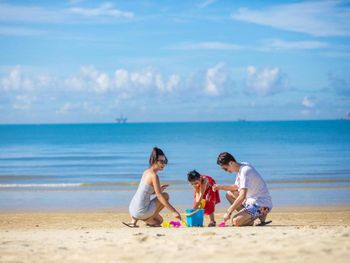 Так как лежаков не досталось, сидели на полотенцах и за неделю все трое были искусаны песчаными блохами.