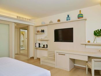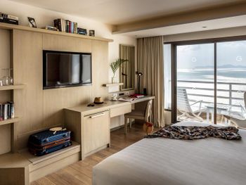 Большой чистый номер с видом на море. Полный набор в номере: халаты, тапки, средства гигиены, 4 бутылки воды, есть даже кофеварка. Отличный напор воды. Завтрак просто прекрасный! Огромный выбор, все вкусно. В честь дня рождения принесли десерт.