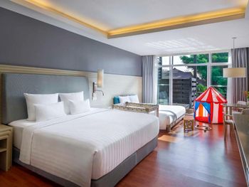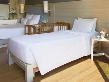 Ожидания и реальность совсем не совпали!!!! Мы на следующий день просили поменять этот отель на Pullman, который на Найтоне. Отель находится давольно далеко от всех пляжей, торговых центров и достопримечательностей. Продолжительные отливы, воды нет метров на 300 до 11 утра и такая же история начинается часов в 16, поэтому каждый день ездили на др пляжи. На завтраки каждый день одно и то же, и очень скудный выбор. Через дорогу есть неплохое кафе The Panwa, где за цену одного завтрака в отеле мы вкусно завтракали втроём. Нигде, кроме ресепшена, нет пандусов, что затрудняет передвижение с коляской, хотя отель выбирали для удобного проживания с детьми. Отель в целом неухоженный, все пошарпанное и затертое. На ресепшне такие грязные диваны, что нет желания садиться. Бассейн не чистили за три недели нашего проживания ни разу (плавают мухи, волосы, листва с деревьев и т.п.). Полотенца у бассейна больше похожи на тряпки, застиранные, с лохмотьями и пятнами. В номерах периодически проблемы с горячей водой. В корпусе, где расположен фитнес центр и детская комната, вечером и рано утром слышно дорогу.