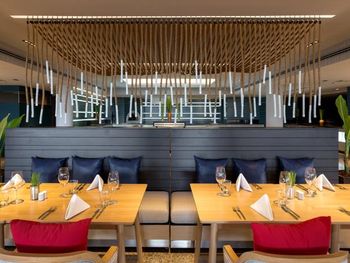 В пляжном клубе Edge представлен широкий выбор популярных блюд западной и тайской кухни. Гостям Edge предложат сочные бургеры, теплый тайский карри и многое другое. Попробовать аутентичные блюда южно-тайской кухни можно в ресторане Tamarind. Гостей ждут необычные вкусы, ароматные специи и блюда, вдохновленные богатым кулинарным наследием южных провинций Таиланда.