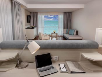 Хорошая зеленая уложенная территория Везде есть проезд на колясках Вкусные завтраки Лишних людей на пляже нет и он чистый Прекрасные детские мягкие манежи Очень приятный и квалифицированный персонал, который оперативно решает сложные вопросы в твою пользу. Отличный детский клуб Много активности, в том числе в бассейне Бесплатный прокат лодок Бесплатный шатл в ТЦ Central Так понравился отель , что пролили бронирование на 2 дня