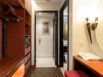Старый отель. Цель поездки была переночевать после работы в этой локации. Заселяли на рецепшн минут 30 было. Потом начали названивать в номер в 10 вечера и говорить что забыли оплату списать чтоб я шла на рецепшн. Забыли дать код для сканирования рум сервис - ещё минут 40 мне его несли. Далее сюрпризы были в ванной комнате - халатов нет, зубные пасты щетки так же у них в этой пятерке за 8000 бат не предусмотрены. Завтрак не о чем. Отель старый, кровати по полу ездят, короче хорошая такая тройка и цена ей такая же.