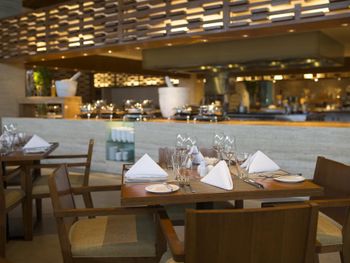 В ресторане Epice с кухней открытой планировки гости могут наблюдать за работой шеф-поваров, которые готовят фирменные местные блюда.