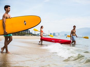 Расстояние от курортного отеля Pullman Danang Beach до международного аэропорта Дананг составляет 8 км. За дополнительную плату в отеле может быть организован трансфер от/до аэропорта.