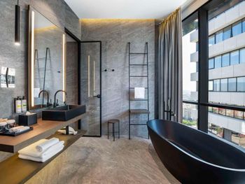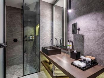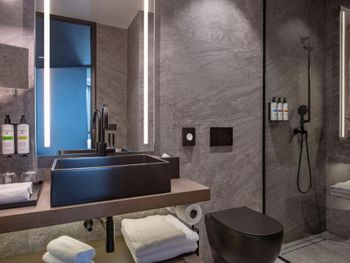 В номерах не было холодной воды в душе! Поменяли номер. Была только очень теплая и кипяток… в номере воняло канализацией!!!! В окна смотрят с соседнего дома! Пробки по 2 часа в отель с центра