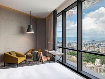 Пара жили с 2 по 4 октября , три ночи / Представительский номер / 31 этаж / номер / 3101 сторона смотрит в сторону отеля " Кинг Давида " .Окна от пола до потолка , Вид Бомба , ночью не передать , как перед большим экраном ночной город как на ладони . Вид 10+ Друзья главное Ваше настроение . Мы пара , нам понравилось Все . Отличные завтраки .. хоть и цена кажется высокой для Грузии , но поверти они того стоят , каждый найдет там на свой вкус ... .. где на завтрак подают Шампанское ? Каждый день что новое ..и вкусненько .