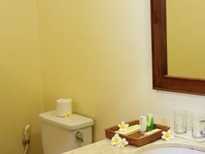 Отель расположен близко к пляжу Джимбаран и к пляжным ресторанам. Можно дойти пешком. Большая зеленая территория. Ощущение будто оазис в джунглях. Есть среднего размера бассейн. Комнаты большие, кровать мягкая, подушек много, мебели достаточно, ванная комната просторная, туалет и душевая разделены каменной перегородкой.
