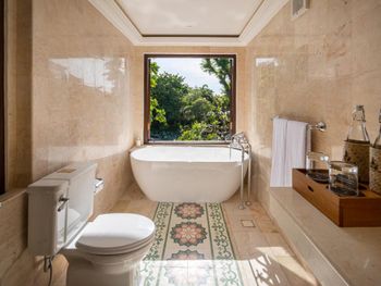 Во всех кондиционированных номерах, оформленных в современном балийском стиле, гости найдут мини-бар и отдельную террасу или балкон с видом на сады, а также собственную ванную комнату с феном и бесплатными туалетно-косметическими принадлежностями.