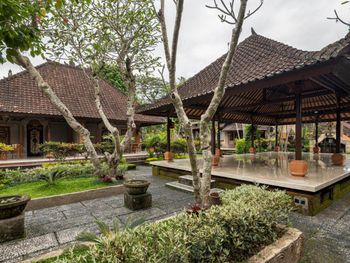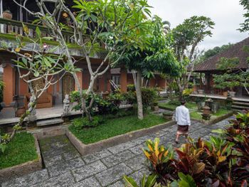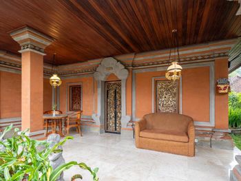 Это центр Убуда. На территории храма людно и очень шумно от дорог вокруг (это относится к номеру на 2 этаже с видом на храм - номер Gatotkaca). Ночью проводили ремонт (в час ночи). Огромная ванная (1/3 номера), делает номер небольшим, на душе нет держателя. Очень мало света в номере, а весь свет в ванной. Дверь закрывается на навесной замок, поэтому постоянно приоткрыта дверь и в номер налетают насекомые. Каждый вечер вы будете с балкона наблюдать шоу...