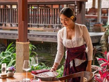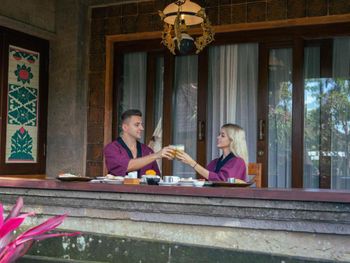 Каждое утро в баре Puri Saraswati или прямо в номере сервируется завтрак.