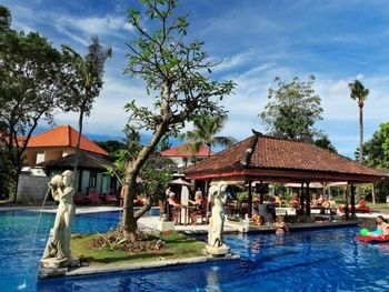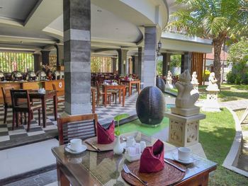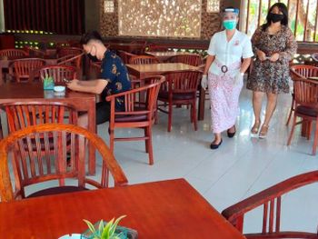 В ресторане Mawar Saron отеля Puri Saron Seminyak подают блюда интернациональной и индонезийской кухонь. Гости могут заказать доставку еды и напитков в номер.