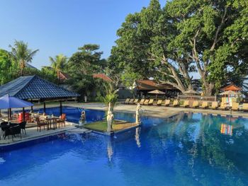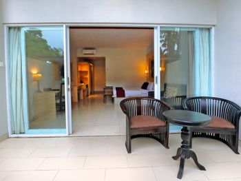 Отель прям старенький и за ним не сильно следят, но в целом жить можно. У них есть виллы с бассейном отдельным, там хорошо. Мы брали номер бунгало, сойдёт, но кровать еле дышит.