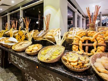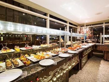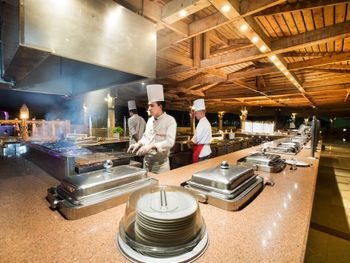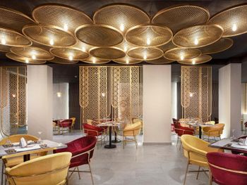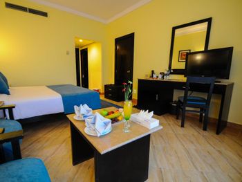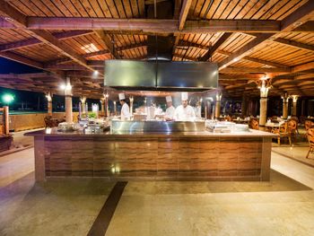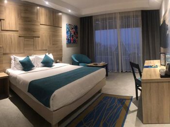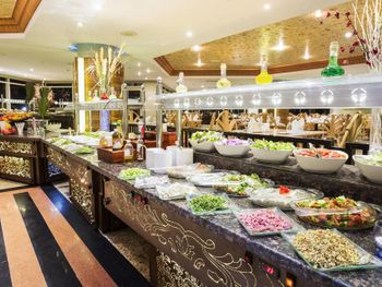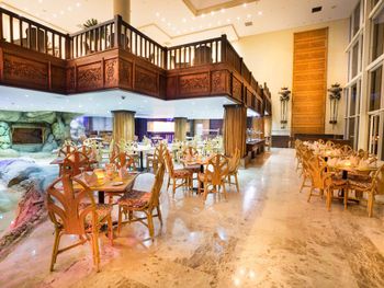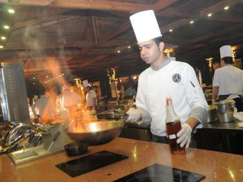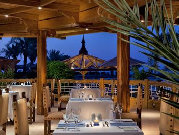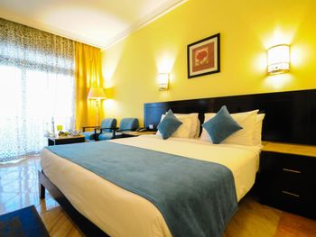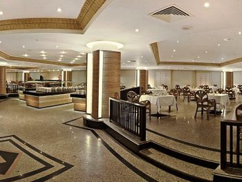 Отель не соответствует заявленным 5 звездам, максимум 3+. Еда достаточно разнообразная, но быстро надоедает одно и тоже. С голоду не умрете. Рестораны азиатской кухни и индийской кухни это что-то (подавали еду со "шведского стола"), причем в обоих ресторанах одно и тоже - хорошо для тех, кто ничего не понимает. Соки порошковые, алкоголь невозможно пить, кофе порошковый. За неделю проживания ни разу не поменяли постельного белья. Полотенца менялись 2 раза. Заявленных тапочек и халатов ждали 3 дня. Территория отеля требует большей ухоженности (очень мало цветов). Отель находится далековато от аэропорта. Отель предназначен пакетным туристам. Вместимость отеля тысяч 5, а то и больше. Номерной фонд требует ремонта. Номера были с 2-мя односпальными кроватями при заявленных двуспальных.