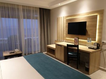Заселение было просто ужасное, заселили в номер, который не соответствовал фото на букинге. В номере не были помыты полы и он был жутко грязный, холодный и убитый. Сотрудники на ресепшен никакие, единственное, что они могут выдать ключ от номера и позвать менеджера. После многочисленных жалоб, к 18.00 поменяли номер на немного лучше. В номерах полностью отсутствует звукоизоляция, спать можно только с 23.00, когда выключают музыку у главного ресторана. Еды достаточно, но мясные блюда и гарниры не вкусные. Кофе в кофемашине не вкусное, вместо молока сухие сливки. Большая часть территории заброшена и требует ремонта.