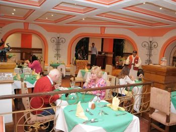 Ресторан, который изначально, возможно, и соответствовал высокому уровню, что можно предположить по его оформлению, в настоящее время больше похож на не самую хорошую общественную столовую.