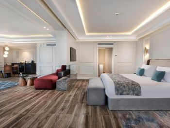 Отель в упадке. Большая его часть в ремонтном состоянии. В некоторых номерах нет горячей воды. Номера требуют ремонта. Мебель старая. Постельное белье застиранное. Номер неопрятный. Сантехника очень уставшая. Убираются плохо. Развлечений практически никаких. Бассейн закрывают в 18 часов. В целом 5 звездочный отель тянет максимум на 3 звезды. Рестораны а-ля карт, расположенные на территории отеля готовят хуже чем в основном ресторане, который кормит завтраками, обедами и ужинами. Такси в отеле предлагают за нереальную стоимость, буквально за территорией отеля можно сторговаться с таксистом, где стоимость будет в 2, а то и в 3 раза дешевле. Территория отеля так же запущена. Неухоженна.