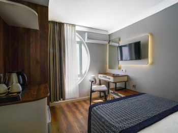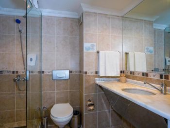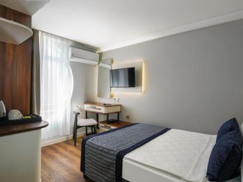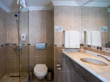 Приехали ночью, заселили сразу(в бронирование была включена услуга «ранее заселение»), но в номер эконом. На утро переехали в наш номер стандарт на 6 этаже. Имейте в виду они там меньше чем на фото, для нас это не было проблемой - останавливались на 5 дней. Персонал отзывчивый. У отеля территории нет, только бассейн. Пляж в 5-10 мин ходьбы, при желании отвезет трансфер от отеля, ходит часто. Еда отличная, завтраки чуть подкачали - менее разнообразные. Рыба белая, красная на пару и гриле; печень; индейка; курица; один раз язык. Сыры. Фрукты. Бобовые. Овощи приготовленные и свежие, зелень, соусы, оливки; десерты. Полотенца меняли ежедневно, постельное ни разу. До Сиде на долмуше ехать мин 20-30, проезд 55 лир (сентябрь 2025)