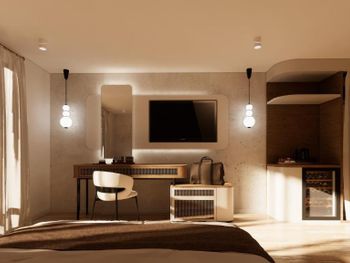 Очень комфортный трехместный номер, хорошая еда в ресторане отеля и на пляже. Удобный трансфер на пляж. Хороший пляж, всегда много свободных шезлонгов.