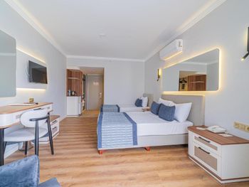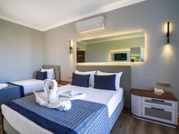 Небольшой, но изумиьельный отель! Есть все, что нужно для комфортного и приятного отдыха. Во всяком случае, все наши запросы были закрыты: море рядом, вкусно, чисто, есть детские горки. Персонал действительно очень приветливый везде: на пляже, в ресторане, уборка, конечно, ресепшен. Еда, ну просто восхитительная!!! За все время отдыха в разных отелях Турции и Египта в разные годы, - это самая вкусная кухня, которую мы встречали!! Хотя отель, как было сказано ранее, не очень большой. Каждый день рыба, говядина, телятила, баранина, индейка, курица. Несколько раз был салат с тунцом, безумно вкусный! Через день (наверное) форель на гриле на обед или ужин (или оба раза), сибас.. Пахлава, халва... ну, просто гастрономические шедевры!! В номерах чистота, постельные принадлежности, полотенца - все белое, матрасы удобные. В барах готовят вкусные коктейли, в лобби даже есть самодельные настойки: некоторые на любителя, а некоторые вполне себе интересные. Никто не выманивает чаевые, что очень радует (приятно осознавать, что тебе искренне хотят сделать хорошо, а не за щедрые чаевые, от этого как раз их хочется оставить, в благодарность!). На ресепшене любой вопрос решается чуть ли не по щелчку пальцев! Больше всего мы сталкивались с менеджером по имени Халит. Хочется выразить ему безмерную благодарность за участие в нашем отдыхе. Беспокоился за наше пребывание в отеле, как будто мы его близкие друзья!