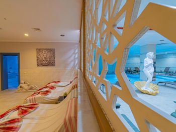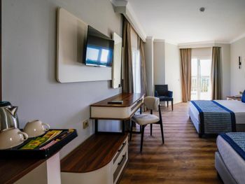 Всё очень понравилось:месторасположение,отель,персонал очень приветливый,прекрасное обслуживание. Весь персонал говорит на немецком и большинство понимают и говорят по-русски. Официанты обслуживают очень быстро ,всегда приветливы,доброжелательны. В отеле есть парикмахерская,сауна(бесплатно). Отдельное спасибо Özkan,этот молодой человек обслуживал наш столик и на пляже ,и в отеле.Он может служить эталоном !