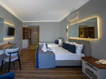Небольшой, но изумиьельный отель! Есть все, что нужно для комфортного и приятного отдыха. Во всяком случае, все наши запросы были закрыты: море рядом, вкусно, чисто, есть детские горки. Персонал действительно очень приветливый везде: на пляже, в ресторане, уборка, конечно, ресепшен. Еда, ну просто восхитительная!!! За все время отдыха в разных отелях Турции и Египта в разные годы, - это самая вкусная кухня, которую мы встречали!! Хотя отель, как было сказано ранее, не очень большой. Каждый день рыба, говядина, телятила, баранина, индейка, курица. Несколько раз был салат с тунцом, безумно вкусный! Через день (наверное) форель на гриле на обед или ужин (или оба раза), сибас.. Пахлава, халва... ну, просто гастрономические шедевры!! В номерах чистота, постельные принадлежности, полотенца - все белое, матрасы удобные. В барах готовят вкусные коктейли, в лобби даже есть самодельные настойки: некоторые на любителя, а некоторые вполне себе интересные. Никто не выманивает чаевые, что очень радует (приятно осознавать, что тебе искренне хотят сделать хорошо, а не за щедрые чаевые, от этого как раз их хочется оставить, в благодарность!). На ресепшене любой вопрос решается чуть ли не по щелчку пальцев! Больше всего мы сталкивались с менеджером по имени Халит. Хочется выразить ему безмерную благодарность за участие в нашем отдыхе. Беспокоился за наше пребывание в отеле, как будто мы его близкие друзья!