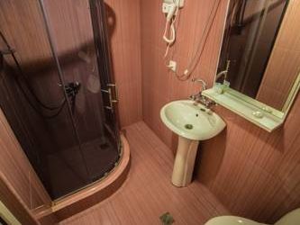 Очень темный номер с 1!!! лампочкой в люстре. На стенах было ещё 2 бра, но они не работали. Матрасы не очень хорошие. Темный и тесный санузел. Раковина с неподходящим к ней большим смесителем из-за которого все время мокрые ноги. Вида из окна нет совсем, стекла на окнах матовые, если открыть окно, то поперек окна идёт трасса к внешнему блоку кондиционера, а дальше вид на стены других домов и захламленный дворик снизу.