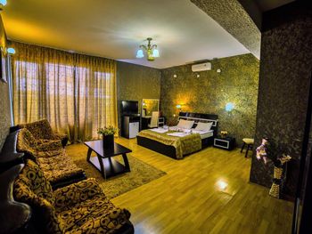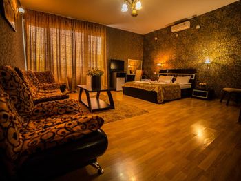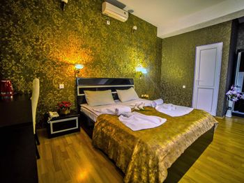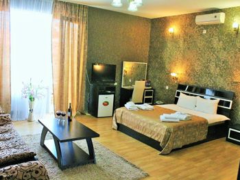 По приезду нам сказали, что так как мы позно приехали, остались только номера люкс, и мы будем жить в люксе за деньги по стандарту, это не могло не радовать (подумали мы). но по факту войдя в номер, мы начали замечать кучу недостатков, кровать была жутко скрипучей и не удобной, в ванной держатель для душа был прикручен скотчем, сидушка на унитазе отломана, а бочок был не исправлен, и постоянно спускал воду, в ту ночь было холодно, и мы решили погреться сплит - системой, и она даже работала( на удивление) но звучала как трактор, и заснуть при таком грохоте было проблематично...