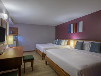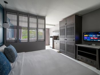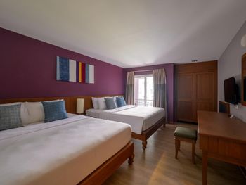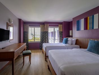 Из современно оформленных номеров отеля RS Seaside открывается вид на пляж Джомтьен или бассейн. В некоторых номерах имеется балкон и ванна.
