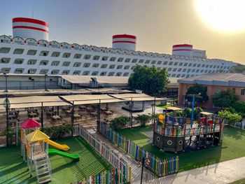 Что понравилось: 1) Оригинальный внешний вид отеля - действительно ощущали себя на огромном лайнере =) Обстановка, особенно в холлах, впечатляет. Внутри комнат оригинальный морской стиль, нестандартная мебель. Однако инженерные системы нуждаются в обновлении (см. минусы) 2) Очень разнообразное питание: огромный ресторан, сложно даже попытаться попробовать все блюда. Питание просто на высоте. 3) На небольшой территории умудрились разместить все необходимое, есть и бассейн с горками, и теннисный корт, и волейбольная площадка, и настольный теннис, и театр, и детская площадка, и зоны отдыха и пр. 4) Есть теплый бассейн внутри с саунами, можно отдыхать и вне сезона 5) До пляжа легко дойти пешком, все близко. 6) Отзывчивый и приветливый персонал