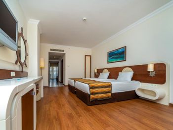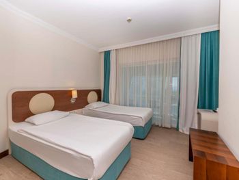 Хороший номер, вкусно кормят по сравнению с другими недорогими 5*. Очень хороший бассейн и красивая, но маленькая территория. Пляж по меркам Кемера хороший, в 5 минутах от отеля.