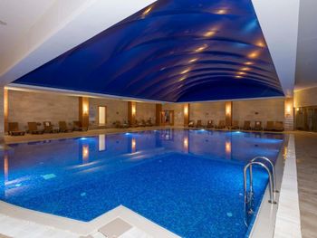 4) Есть теплый бассейн внутри с саунами, можно отдыхать и вне сезона