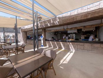 Уютный небольшой по территории отель, еда- вкусная, была и курица, рыба, красное мясо. Красное вино неплохое, остальное не пробовала. Приятный персонал на стойке регистрации и девушки работающии с клиентами - guest relations. Мы были не в сезон, поэтому отдыхающих было не много, отель заполнен в апреле на 40% поэтому было супер тихо, без очередей к еде, лежакам и тд. Уборку вели почти каждый день по крайней мере полотенца меняли, кровать заправляли, выносили мусор. Номера большие вместительные нам достался вместо 2х местного, трехместный, большой номер. Есть одноразовые зубные щетки, и другие принадлежности для ванной, тапочки, без халатов. Но номера, конечно, старенькие, требующие ремонта. Полотенца тоже старенькие, если особо не придираться, то на 4* вполне хороший отель. Есть внутренний паркинг. Очень приятная девушка Венера на ресепшн, всегда старалась помочь во всех вопросах.