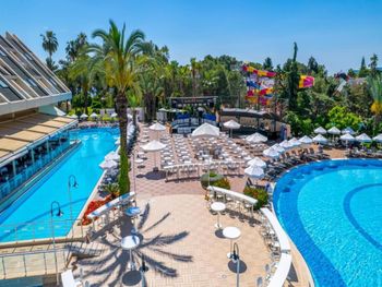 Территория большая есть 10 баров и ресторанов , всегда близко от воды , есть 2 дня в неделю с очень хорошим питанием на ужин это пятница рыбный вечер и вторник турецкая ночь . Мы отдыхали с 2 детьми . Есть несколько плюсов кто любитель айрана , он не в ограниченных количеств что в других отелей нет ,есть простой но классный ночной ужен с 23-30 до 1-00 и на него много людей ходит. Очень классный бассейн с горками ( если жарко там есть где скрыться от солнца ) мы были в середине августа температура была 38градусов днем и 32 ночью , вода в море 30-32 градуса в бассейнах также . Нам понравился пляж есть дорожки прямо в море а если не хочешь с пляжа заходи с пирса . В общем отель не плох но за эти деньги ( в августе он стоит на 4 х порядка 4тыс € на 10 дней без перелетов и трансфера я считаю это очень дорого для него !!!)