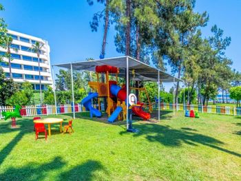 Зелёная, ухоженная территория, у нас был новый номер в тихом месте. Питание разнообразное, масса перекусов на территории в снекбарах, неплохие коктейли, ходили в рыбный аля карт вкусно понравилось, кофе в кофехаусе тоже зачётное, бутылочное пиво, мороженое, гезлиме все в доступности. Персонал в большинстве приветливый, был комплимент в номер в виде тарелки фруктов и бутылки вина. Бассейны чистые, водные горки по расписанию, на пляже с лежаками никаких проблем. Анимация показалась слабоватой.Смело рекомендую!