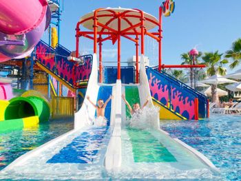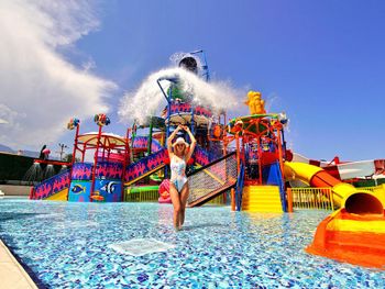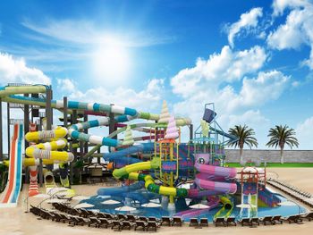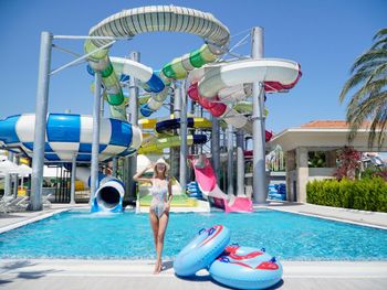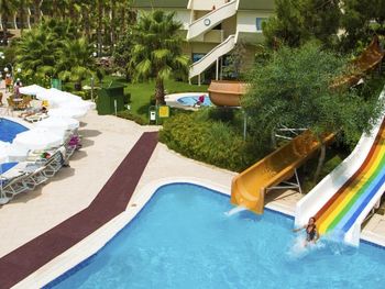 Место сравнительно нежаркое для Турции из-за близости гор, много зелени вокруг. Много горок в аквапарке, правда, правила посещения их размыты и толкование зависит от того кто именно в этот день там дежурит из персонала.