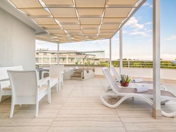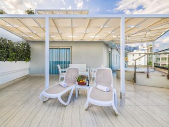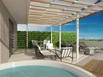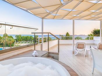 Мы брали номер с террасой и джакузи, что бы иметь возможность проводить там время и в непогоду, и для того, что бы ребенок мог там ползать (7 месяцев). Как оказалось, навес террасы не защищал от дождя, а пол терассы не убирался на протяжении всего нашего отдыха.
