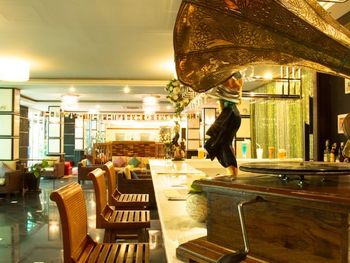 Ресторан открыт в течение дня и сервирует блюда местной и международной кухни. Гости могут насладиться блюдами в помещении и на свежем воздухе. Коктейли можно заказать в баре или на террасе.
