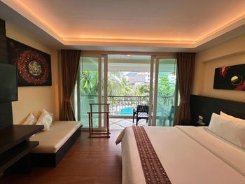 Уютный отель со своей небольшой зеленой территорией и бассейном. Спа-центр в самом отеле. Хорошее обслуживание номера. Вариант проживания Делюкс. Не чувствуется близость Банглы. Рядом с отелем есть неплохой ресторан Orange с очень приветливой хозяйкой.