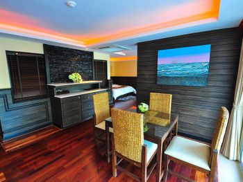Удобное расположение отеля - в центре Патонга, но в тоже время в изоляции от городского шума. Большой бассейн. Зелёная территория.