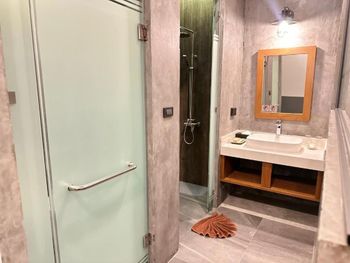 Откровенно грязный душ. Стул со столом, если нужно поработать, то абсолютно не подходят для этого. Вида не было абсолютно никакого.