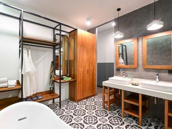 Не то что бы минус но кому-то может быть не удобно что ванна и туалет не отделены от номера по сути, свет и звук достаточно сильно может мешать тому кто отдыхает в данный момент либо ночью.