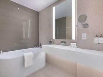 В Radisson Beach Resort Palm Jumeirah в каждом номере имеется кондиционер, телевизор с плоским экраном с кабельными каналами и сейф. Среди прочих удобств — гостиная зона и собственная ванная комната с душем, бесплатными туалетно-косметическими принадлежностями и феном. Гостям Radisson Beach Resort Palm Jumeirah предоставляются постельное белье и полотенца.