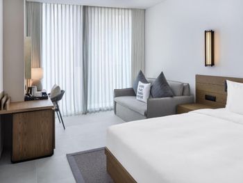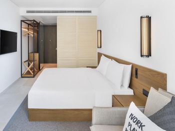 Ужасная шумоизоляция, все что говорят в коридорах слышно в номер, все двери хлопают будто стена вылетает, уснуть раньше 4 утра у вас не получиться, учитывайте при заселении, потому что музыка снизу и сверху громкая настолько, что даже беруши не помогают. Персонал улыбается в лицо, но на каждом шагу выжим денег, от ужасного курса обмена, до активностей вроде джет-ски. Переходники не предусмотрены, розеток в ванной нету, ночью все кнопочки по номеру светятся и бьют в глаза. Бассейн на крыше платный, бар на верхнем этаже среднего или ниже класса, но прайс как в ресторанах мишлен. Работники выпрашивали чаевые дополнительные. Завтрак посредственный. Место на пляже не найти. Крайне не рекомендую, если вы не живете ночной жизнью.