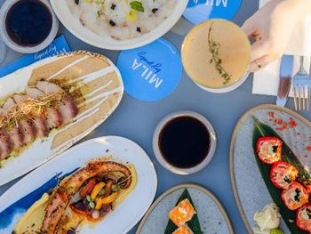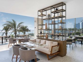 Ежедневно гостям подают завтрак «шведский стол», континентальный завтрак или халяльный завтрак. При Radisson Beach Resort Palm Jumeirah работает ресторан, где подают блюда американской кухни, блюда средиземноморской кухни и блюда мексиканской кухни. Гости могут попросить приготовить вегетарианские, безлактозные и халяльные блюда.